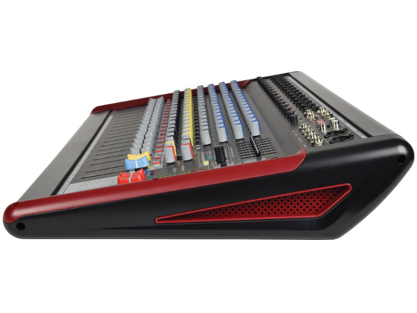 Fully featured live mixing console with 14 mono mic/line inputs on XLR/jack and 2 stereo line jack inputs.