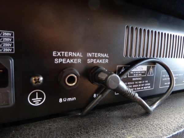 Battered 100 watt bass guitar amplifier.