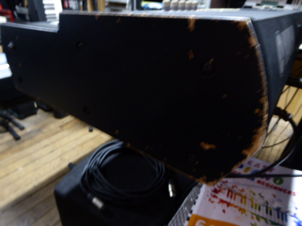 This unit has a few light surface scratches on the top rear of the keyboard, and some scuffs to the wooden end cheeks. (pictured)