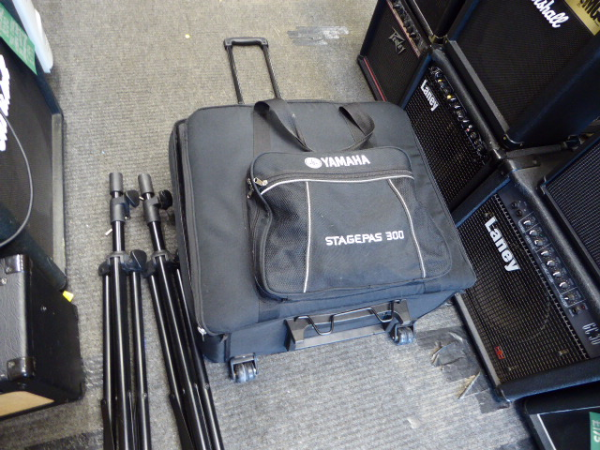 Portable, all-in-one 300-watt (150W + 150W) PA system featuring a detachable 8-channel powered mixer and two passive speakers.